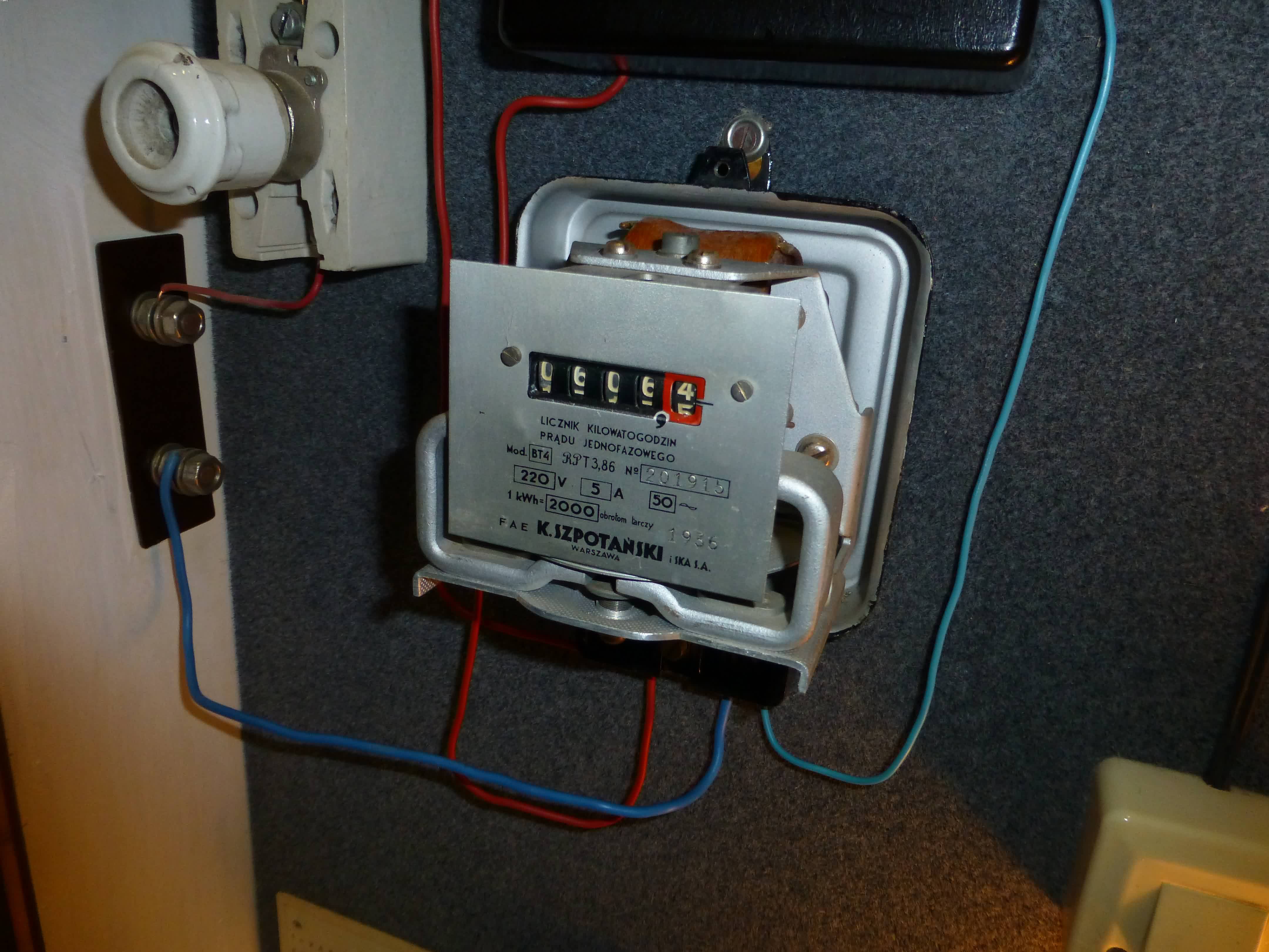 licznika energii elektrycznej produkcji Fabryki Aparatów Elektrycznych K. Szpotański.