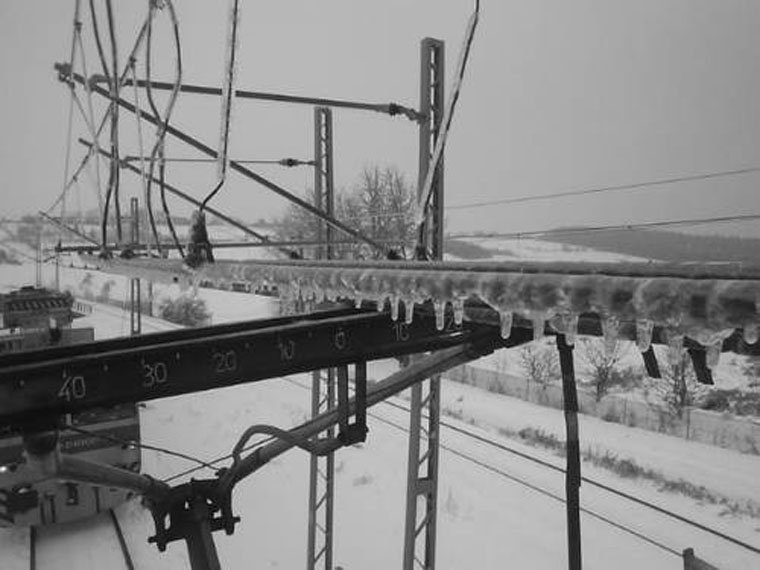 szczególnym uwzględnieniem trakcji elektrycznej. W tym czasie zdarzają się pęknięcia szyn przy nagłych spadkach temperatury, duże opady śniegu blokujące tory i rozjazdy kolejowe, oraz oblodzenia sieci trakcyjnej i wagonów.